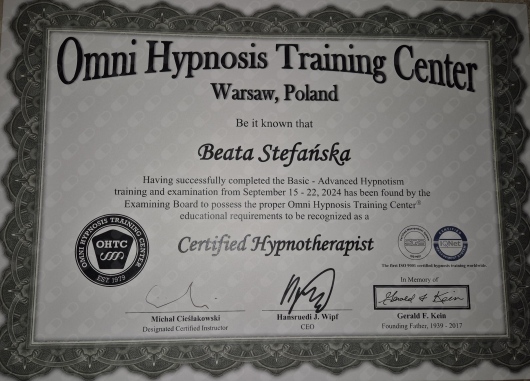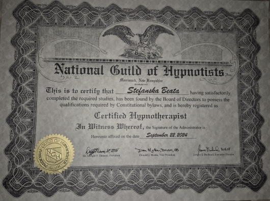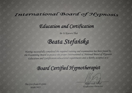 Miałam szczęście uczestniczyć w sesji hipnoterapii prowadzonej przez Beatę. Beata wykazała się pełnym profesjonalizmem. Jej zaangażowanie, dbałość o szczegóły, cierpliwość, prawdziwa chęć niesienia pomocy, którą się czuje, sprawiły, że mogłam jej zaufać. Sam proces hipnozy przeprowadzony był po mistrzowsku. Zostałam uwolniona od problemu, który ciążył mi przez całe życie i poczułam się jak nowo narodzona. I to wszystko dzięki jednej sesji hipnoterapii. Jestem bardzo wdzięczna Beacie i polecam ją każdemu, kto chce odmienić swoje życie.